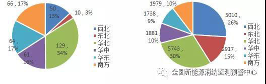 二季度各區(qū)域新增(左)、累計(右)并網風電裝機(萬千瓦)