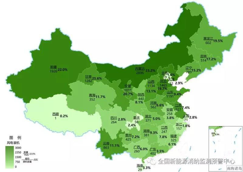 截至6月底各地區(qū)累計風電裝機(萬千瓦)及占本地區(qū)總裝機比重