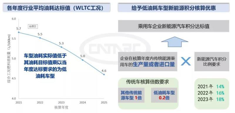 現(xiàn)階段《積分辦法》實施以來,行業(yè)對政策實施效果存在一定爭議,有專家認為行業(yè)積分供大于求造成新能源積分的浪費,也有專家認為近年來傳統(tǒng)車油耗下降較慢,需要加強引導。對于以上問題,我們發(fā)現(xiàn)在《征求意見稿》中針對性的新增了一些條款,實現(xiàn)了將傳統(tǒng)車油耗引導與積分靈活統(tǒng)籌考慮:2021年度及以后年度對企業(yè)傳統(tǒng)車油耗達到當年度達標值123%的,新能源汽車正積分可按照50%的結(jié)轉(zhuǎn)系數(shù)向后結(jié)轉(zhuǎn),結(jié)轉(zhuǎn)有效期不超過3年。我們認為將以上兩措施相關聯(lián),能起到引導企業(yè)改善傳統(tǒng)車油耗的作用,也避免了當行業(yè)新能源正積分過量時造成的資源浪費,最終實現(xiàn)良性循環(huán)。