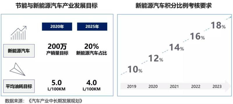 《征求意見稿》提出了2021-2023年的新能源積分比例要求,2021-2023年度考核比例分別為14%、16%、18%,2024年度及以后的積分考核要求另行制定。對于此種分階段管理的方法,我們認為十分符合我國現(xiàn)階段產(chǎn)業(yè)現(xiàn)狀,盡管國家節(jié)能與新能源汽車產(chǎn)業(yè)發(fā)展目標均指向2025年,但是未來新能源汽車產(chǎn)業(yè)發(fā)展趨勢和政策環(huán)境仍存在較大的不確定性,先期提出2021-2023年的分階段管理政策,能切實降低后續(xù)年份的政策實施風險。