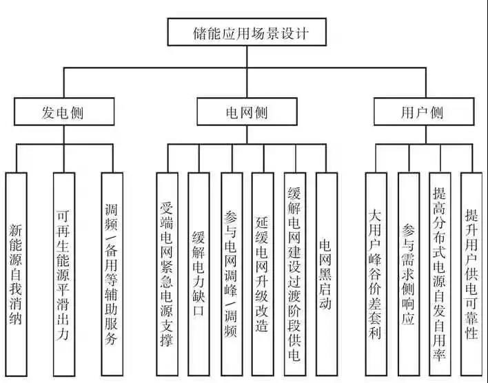 可再生能源和新能源在現(xiàn)代電力系統(tǒng)的滲透, 覆蓋了電力生產(chǎn)、 傳輸、 消費(fèi)的全過(guò)程, 對(duì)發(fā)電側(cè)、 電網(wǎng)側(cè)、 用戶(hù)側(cè)均產(chǎn)生了巨大影響, 儲(chǔ)能電站在三側(cè)均具有典型的應(yīng)用場(chǎng)景和特殊的技術(shù)經(jīng)濟(jì)條件。圖2 是本文歸納的最主要的儲(chǔ)能場(chǎng)景分類(lèi)情況, 本節(jié)將對(duì)幾個(gè)主要場(chǎng)景下的儲(chǔ)能特性及其發(fā)揮的作用進(jìn)行詳細(xì)分析, 并著重對(duì)儲(chǔ)能系統(tǒng)評(píng)價(jià)方法進(jìn)行綜述。