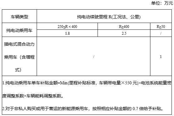 2、純電動乘用車工況續(xù)駛里程不低于250 km。插電式混合動力乘用車(含增程式)工況法續(xù)駛里程不低于50 km。(純電動乘用車工況續(xù)駛里程不低于150 km。插電式混合動力(含增程式)乘用車工況法續(xù)駛里程不低于50 km。)(2018年補貼技術(shù)要求)