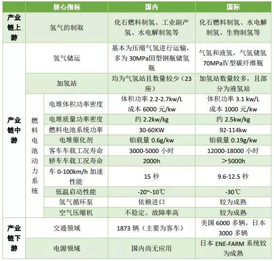 國內(nèi)外氫燃料電池產(chǎn)業(yè)核心指標(biāo)對比
