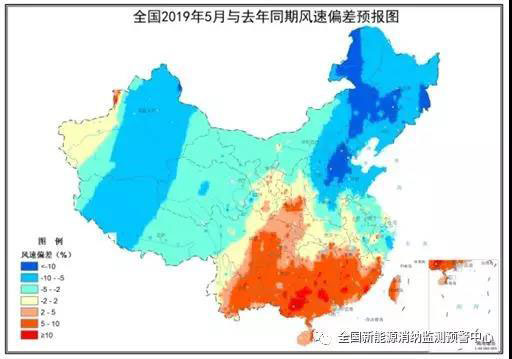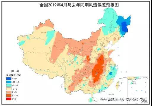 全國2019年4月(上圖)、5月(中圖)、6月(下圖)與去年同期風(fēng)速偏差預(yù)報圖(數(shù)據(jù)來源:中國氣象局風(fēng)能太陽能資源中心)