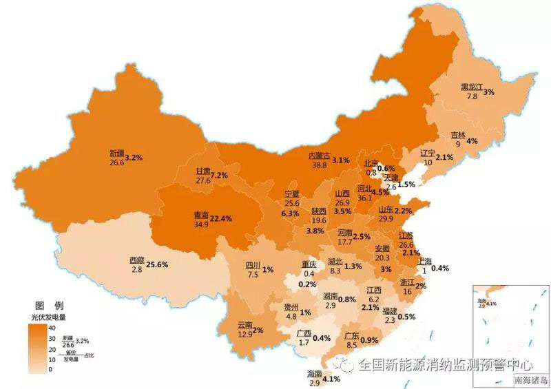 一季度各地區(qū)光伏發(fā)電量及占本地區(qū)總發(fā)電量比重