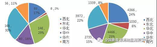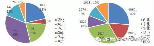 一季度各區(qū)域新增(左)、累計(右)并網(wǎng)風(fēng)電裝機(jī)(萬千瓦)