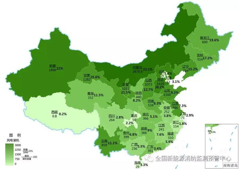截至3月底各地區(qū)累計風(fēng)電裝機(jī)(萬千瓦)及占本地區(qū)總裝機(jī)比重