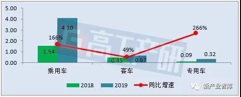 從車輛細(xì)分類別來(lái)看,2019年3月新能源乘用車電池裝機(jī)電量約4.10GWh,同比增長(zhǎng)166%;客車電池裝機(jī)電量約0.67GWh,同比增長(zhǎng)49%;專用車電池裝機(jī)電量約0.32GWh,同比增幅最大,高達(dá)266%。