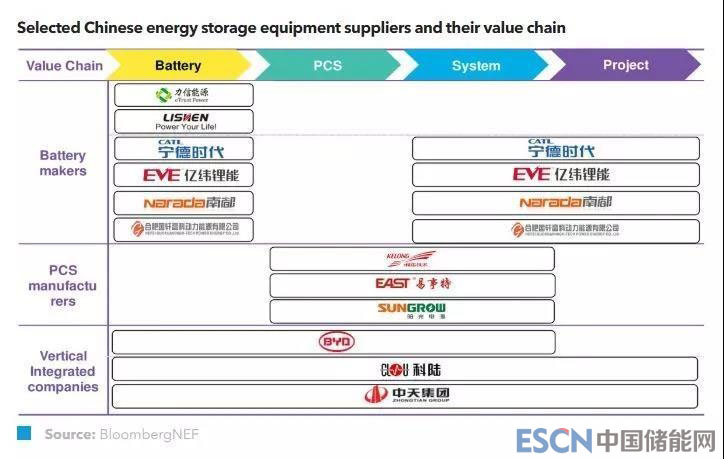 中國儲能市場的集成商主要由儲能設備廠商、電網(wǎng)企業(yè)、風電光伏設備制造商、儲能項目開發(fā)商、電動汽車企業(yè)等構成。數(shù)量眾多的設備廠商使得中國市場中獨立系統(tǒng)集成商很難找到市場空間。這與我們在歐洲、美國等市場觀察到的儲能市場早期創(chuàng)業(yè)型的系統(tǒng)集成商占主導極為不同。