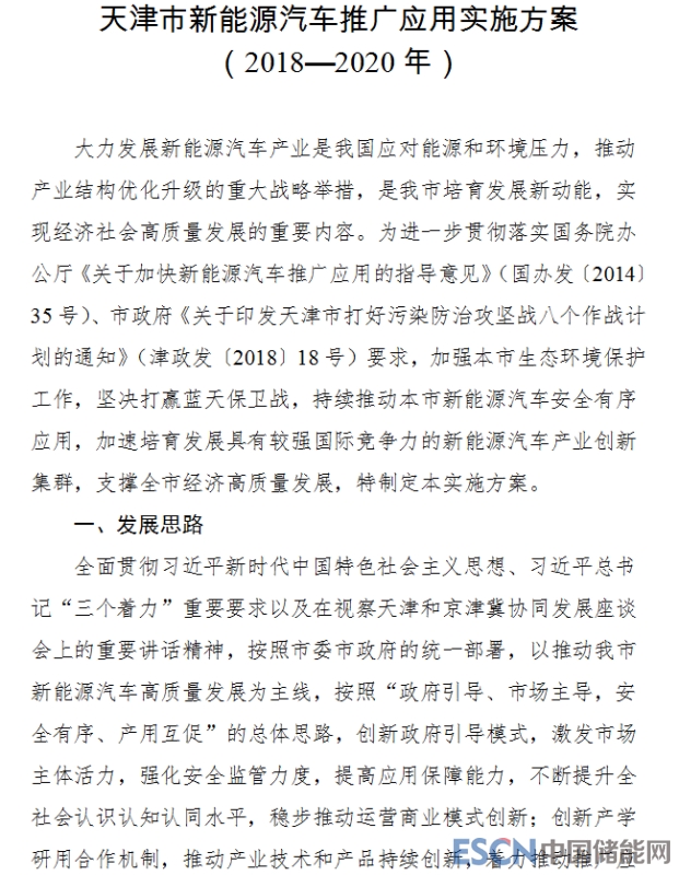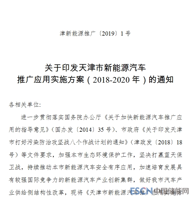 天津市發(fā)布新能源汽車推廣應用實施方案(2018-2020年)