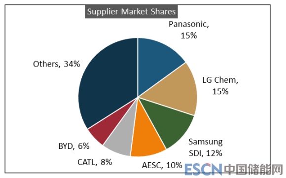2017年全球電池生產(chǎn)廠商的市場(chǎng)份額