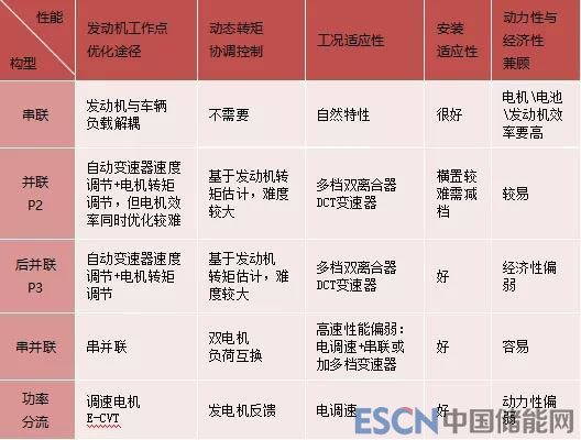 對于常規(guī)混合動力汽車,其使用油耗與道路工況有很大關系。在擁堵的城市工況,由于車速較低且需要頻繁的加速和減速,使用串聯(lián)混合方式可以將發(fā)動機與負載工況解耦,與傳統(tǒng)汽油車相比,混合動力汽車的節(jié)油效果顯著。而高速公路工況相對穩(wěn)定且負荷率也相對更高,因此從節(jié)油角度,發(fā)動機直驅或者并聯(lián)混合較好。豐田Prius功率分流式混合動系統(tǒng)同時具有串聯(lián)和并聯(lián)功能,一直是常規(guī)混合動力的國際標桿。但隨著混合動力技術的多元化發(fā)展,不同混合動力系統(tǒng)構型均能實現(xiàn)功率分流式混合動力的高性能,如表2所示。日產的串聯(lián)式混合動力NOTE e-POWER在能效和市場接受度上與豐田功率分流式混合動力的激烈競爭就是很好的例證。因此,中國發(fā)展常規(guī)混合動力不一定要完全走功率分流的模式,全系列模塊化與構型一體化的歐洲模式更值得我們學習。
