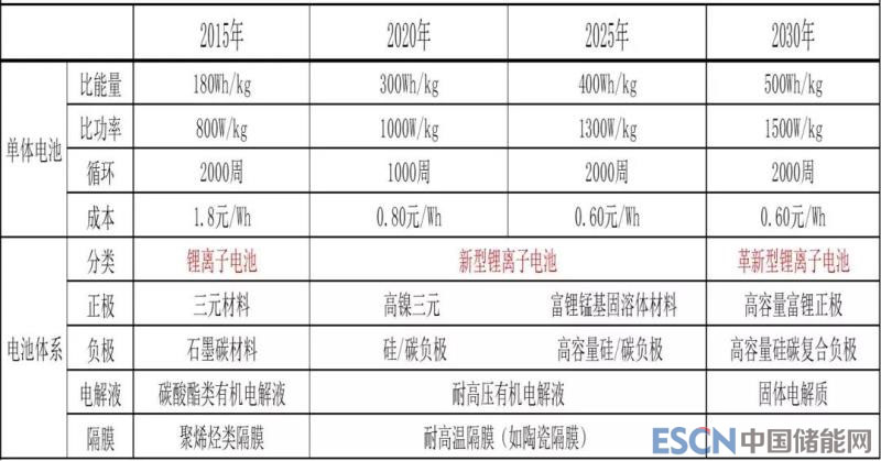 表1 動力電池技術發(fā)展技術路線與目標展望2017