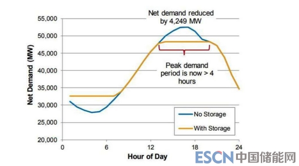 高峰期間4小時(shí)儲(chǔ)能系統(tǒng)對(duì)加州凈負(fù)荷影響