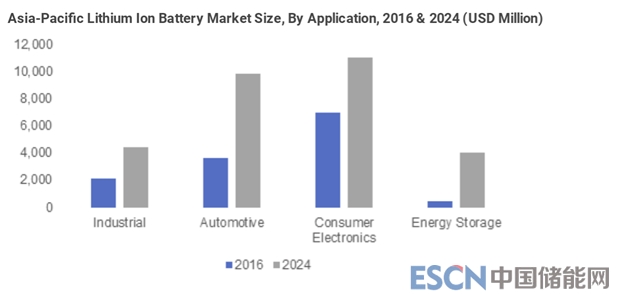 Global Market Insights公司的報告預(yù)測,2016年至2024年的儲能系統(tǒng)和汽車市場的鋰離子電池應(yīng)用將增長一倍以上。