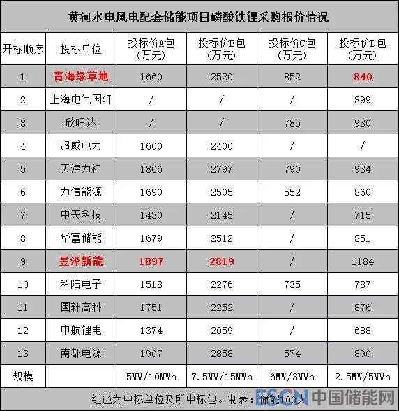在最終入圍的13家企業(yè)里,深圳昱澤新能報價處于較高位置,僅次于南都電源。青海綠草地則報出中低價位。各家報價如下圖所示: