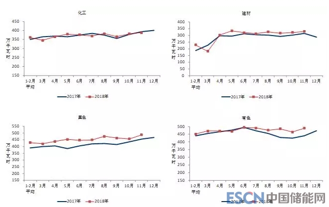 圖3 2017、2018年重點(diǎn)行業(yè)分月用電量情況