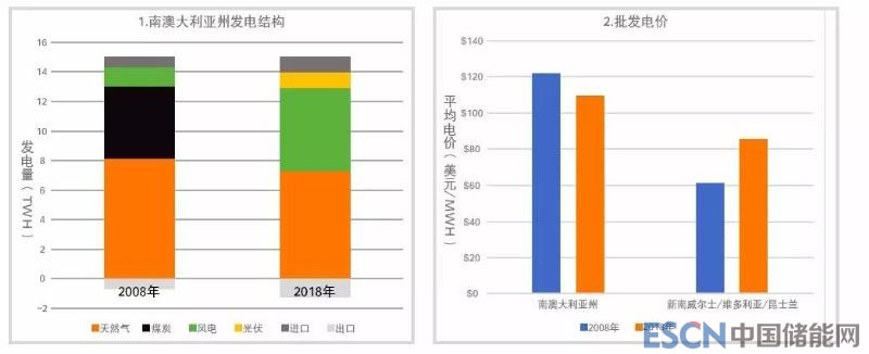 過去十年里,南澳州發(fā)電領(lǐng)域發(fā)生了天翻地覆的變化。煤炭發(fā)電在2016年徹底消失,天然氣發(fā)電也在減少。盡管南澳州的平均電價(jià)相比澳大利亞其它州依然較高,但下降的趨勢十分明顯。可以說南澳州是可再生能源發(fā)展的標(biāo)志性地區(qū),儲(chǔ)能在這樣的電力體系中,也必將扮演著重要角色。