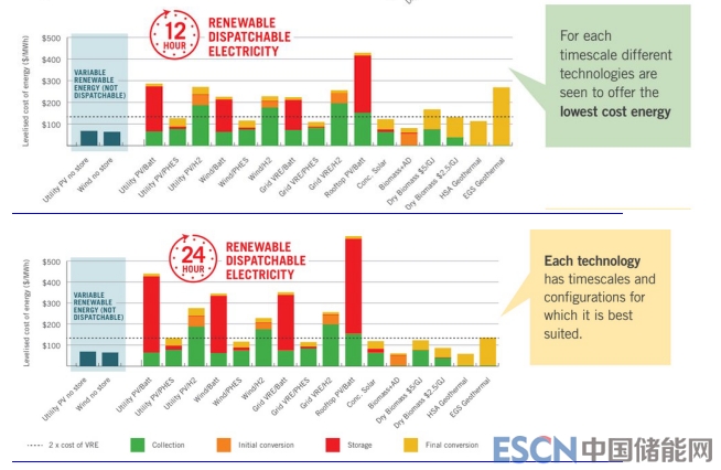一項(xiàng)名為“可調(diào)度可再生電力選擇比較:有序過渡技術(shù)的比較”的研究報告發(fā)現(xiàn),無論儲能需求是1小時、5小時、24小時,還是幾周,都會提供一個可再生的儲能選項(xiàng),其成本不會超過風(fēng)力發(fā)電和太陽能發(fā)電本身的1.5和2倍。