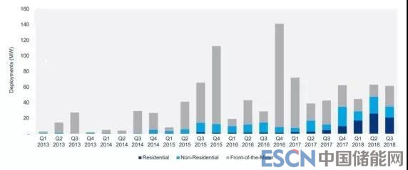 Wood Mackenzie Power&Renewables和能源存儲協(xié)會(ESA)上周四發(fā)布了美國儲能監(jiān)測報告,顯示美國第三季度儲能部署同比增長44%。具體而言,美國第三季度總共部署了61.3MW,同比增長198%。