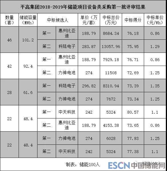 中國儲能網(wǎng)訊:12月6日,平高集團(tuán)發(fā)布2018-2019第一批儲能項(xiàng)目設(shè)備類采購招標(biāo)結(jié)果,由于這是江蘇電網(wǎng)側(cè)儲能的大工程,平高此番高達(dá)352MWh的儲能項(xiàng)目招標(biāo),一直是業(yè)界角力的最大節(jié)點(diǎn)。通過招標(biāo),比亞迪、中天、科陸、力神中標(biāo),其中比亞迪成為最大贏家。各家中標(biāo)大致如下: