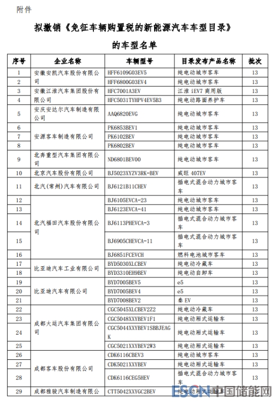 中國儲(chǔ)能網(wǎng)訊:日前,工信部發(fā)布了《關(guān)于擬撤銷<免征車輛購置稅的新能源汽車車型目錄>名單的公示》。據(jù)統(tǒng)計(jì),本批名單包含77家企業(yè)的199款車型,其中含14款新能源乘用車,涉及車型包括比亞迪e5、比亞迪秦EV、奇瑞eQ1、昌河北斗星E、江鈴E160等。