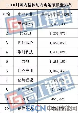 GGII數(shù)據(jù)顯示,2018年1-10月實(shí)現(xiàn)新能源汽車動力電池裝機(jī)配套的電池企業(yè)共計88家,與去年同期相比增長2家,其中僅前六家電池企業(yè)的裝機(jī)電量超過100萬KWh(即1GWh);