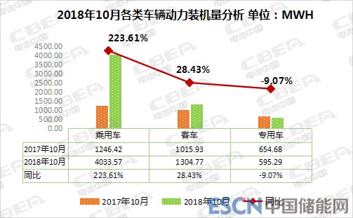 從車輛細(xì)分類別來看,2018年10月,我國新能源乘用車動(dòng)力電池裝機(jī)量約4.03Gwh,環(huán)比增長22.29%,同比增長223.61%,1-10月累計(jì)裝機(jī)量為21.6Gwh;新能源客車動(dòng)力電池裝機(jī)量約1.3Gwh,環(huán)比下降30.03%,同比增長28.43%,1-10月累計(jì)裝機(jī)量為10.2Gwh;新能源專用車動(dòng)力電池裝機(jī)量約0.55Gwh,環(huán)比增長7.57%,同比下降9.07%,1-10月累計(jì)裝機(jī)量為2.8Gwh。