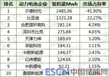 圖:2018年10月TOP10動(dòng)力電池企業(yè)