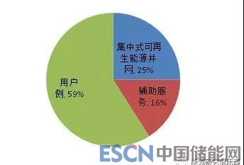 從我國新增投運(yùn)的電化學(xué)儲能項(xiàng)目的應(yīng)用分布上看,2017年,用戶側(cè)領(lǐng)域的新增裝機(jī)規(guī)模所占比重最大,為59%,其次是集中式可再生能源并網(wǎng)領(lǐng)域,所占比重接近25%,排在第三位的是輔助服務(wù)領(lǐng)域,占比16%(見圖7)。