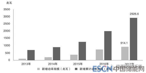 圖5 2013~2017年全球投運(yùn)電化學(xué)儲能項(xiàng)目裝機(jī)情況(單位:兆瓦)