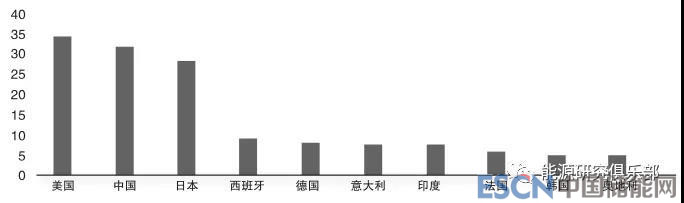 圖3 2018年全球累計(jì)運(yùn)行儲能裝機(jī)TOP10國家(單位:吉瓦)