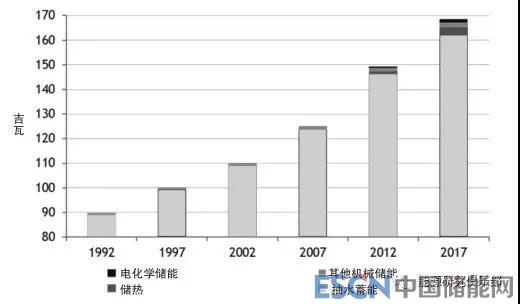 圖2 1992~2017年全球儲能裝機(jī)增長情況