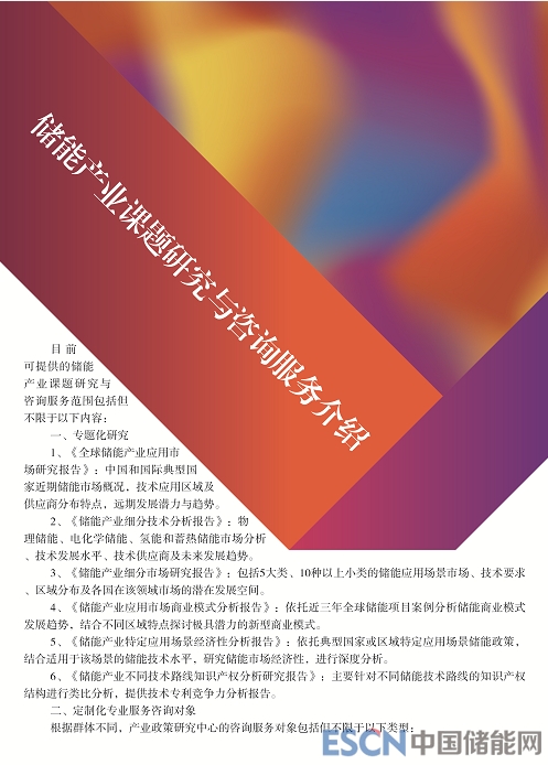 儲(chǔ)能產(chǎn)業(yè)政策研究中心:儲(chǔ)能產(chǎn)業(yè)課題研究與咨詢服務(wù)介紹