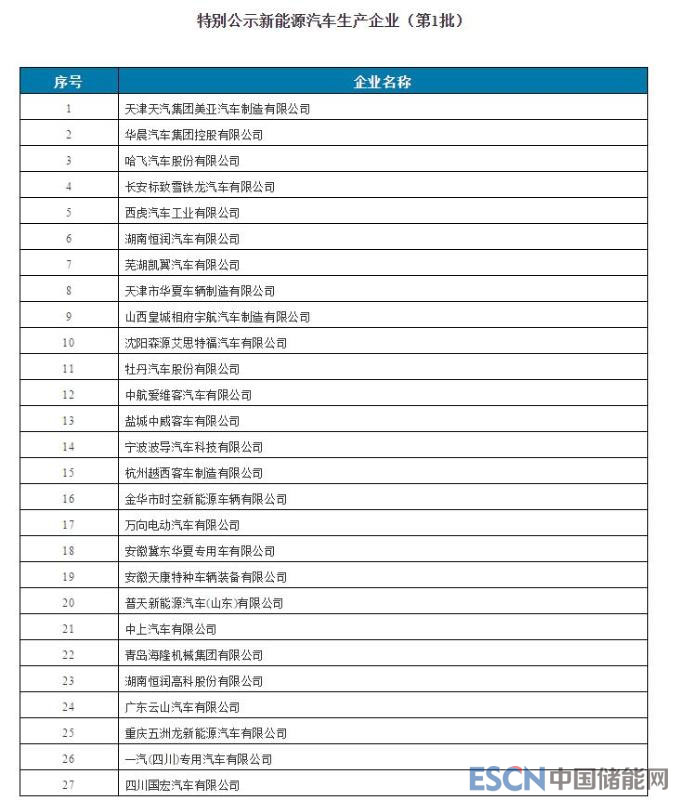 中國儲能網訊:工業(yè)和信息化部今日公告《特別公示新能源汽車生產企業(yè)(第1批)》,27家被特別公示企業(yè)將暫停受理其《道路機動車輛生產企業(yè)及產品公告》新能源汽車新產品申報。申請移出特別公示的企業(yè),需通過《新能源汽車生產企業(yè)及產品準入管理規(guī)定》 《準入審查要求》的考核。