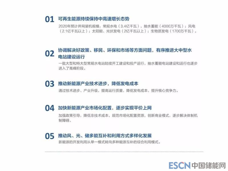 2018-2020中國可再生能源發(fā)展的前景:一是可再生能源持續(xù)保持中高速增長的態(tài)勢,常規(guī)水電和抽水蓄能、風(fēng)電、生物質(zhì)發(fā)展目標(biāo)與“十三五”目標(biāo)基本一致,太陽能發(fā)電較快,超過“十三五”目標(biāo);二是通過協(xié)調(diào)解決好政策、移民、環(huán)保和市場等方面的問題,有序推進(jìn)大中型水電站的建設(shè);三是通過推動(dòng)新能源產(chǎn)業(yè)的技術(shù)進(jìn)步,降低發(fā)電成本;四是加快新能源產(chǎn)業(yè)市場化的配置,逐步實(shí)現(xiàn)平價(jià)上網(wǎng);五是推動(dòng)風(fēng)、光、儲(chǔ)多能互補(bǔ)和利用方式的多元化發(fā)展。