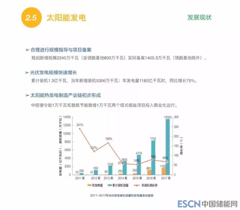 在太陽能發(fā)電方面,去年我國新增裝機(jī)5306萬千瓦,目前我國光伏發(fā)電累計(jì)裝機(jī)已達(dá)1.3億千瓦。同時(shí),我國太陽能熱發(fā)電制造產(chǎn)業(yè)鏈也初步形成。2017年太陽光伏發(fā)電投資規(guī)??焖僭鲩L,比2016年增長了41%,同時(shí)單位千瓦造價(jià)部分已經(jīng)降低至每千瓦5500元以下,棄光的現(xiàn)象也得到了有效控制。
