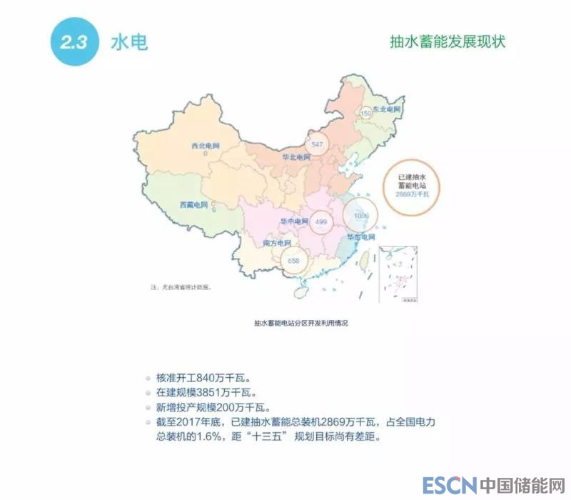 到2017年底,中國的常規(guī)水電總裝機(jī)容量達(dá)到3.6億千瓦,其中在建規(guī)模5100萬千瓦。抽水蓄能在建規(guī)模為3851萬千瓦,已建總裝機(jī)容量為2869萬千瓦。