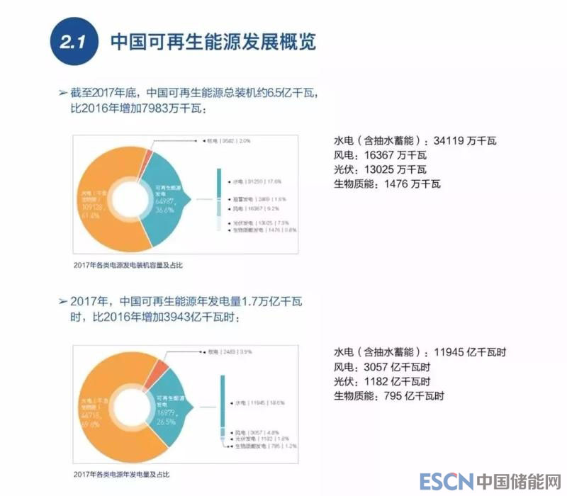 到2017年底,中國可再生能源總裝機(jī)容量約6.5億千瓦,占全國總裝機(jī)量的36.6%,可再生能源發(fā)電總量占全國發(fā)電總量的26.5%。