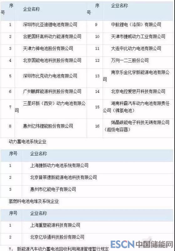 6、汽車動(dòng)力蓄電池和氫燃料電池行業(yè)白名單(第一批)公告