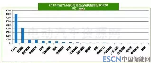 2018年前7月,新能源汽車行業(yè)在補(bǔ)貼幅度調(diào)整、技術(shù)標(biāo)準(zhǔn)提高、行業(yè)進(jìn)一步規(guī)范的情況下,市場(chǎng)頭部效應(yīng)愈發(fā)明顯。2018年前7月,寧德時(shí)代裝機(jī)量8090.51MWh,位居第一,占比高達(dá)42%;比亞迪電池裝機(jī)量4225.61MWh,位居第二,占比達(dá)22%。這兩家企業(yè)的市場(chǎng)份額之和達(dá)到64%。
