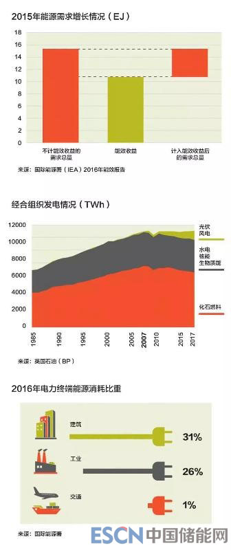 中國(guó)和印度正在用太陽(yáng)能和風(fēng)電取代化石燃料。2012年和2016年,中國(guó)分別取代美國(guó)成為全球最大的太陽(yáng)能和風(fēng)電國(guó)以及最大的電動(dòng)汽車生產(chǎn)國(guó)。國(guó)際能源署預(yù)計(jì),今后25年,27%的能源需求的增長(zhǎng)將來(lái)自印度,19%將來(lái)自中國(guó)。