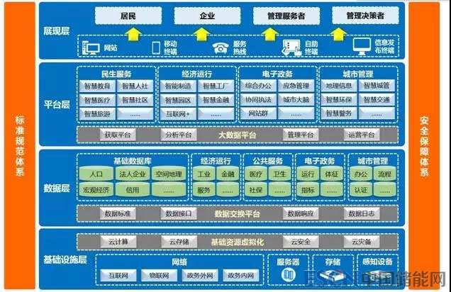 智慧江蘇建設(shè)的總體架構(gòu)包括基礎(chǔ)設(shè)施層、數(shù)據(jù)層、平臺(tái)層、展現(xiàn)層等四個(gè)層次和標(biāo)準(zhǔn)規(guī)范體系、安全保障體系等兩個(gè)體系。展現(xiàn)層通過(guò)整合各種渠道,為市民、企業(yè)、管理服務(wù)者、管理決策者四類服務(wù)對(duì)象提供統(tǒng)一的訪問(wèn)和交互入口;平臺(tái)層通過(guò)提供跨部門、跨行業(yè)的融合性服務(wù)應(yīng)用,實(shí)現(xiàn)管理端的有序協(xié)同和服務(wù)端的有效反饋;數(shù)據(jù)層通過(guò)建設(shè)各類數(shù)據(jù)庫(kù)、統(tǒng)一數(shù)據(jù)交換平臺(tái),實(shí)現(xiàn)數(shù)據(jù)資源的標(biāo)準(zhǔn)化、規(guī)范化;基礎(chǔ)設(shè)施層通過(guò)集約化建設(shè)和云服務(wù)方式,合理靈活地分配基礎(chǔ)設(shè)施資源。遵循國(guó)家各項(xiàng)法律法規(guī)和相關(guān)行業(yè)標(biāo)準(zhǔn),構(gòu)建智慧江蘇標(biāo)準(zhǔn)規(guī)范體系,形成統(tǒng)一的信息化標(biāo)準(zhǔn)框架和面向各重點(diǎn)領(lǐng)域的行業(yè)信息化標(biāo)準(zhǔn)規(guī)范。打造涵蓋技術(shù)、設(shè)施、管理、法規(guī)的智慧江蘇網(wǎng)絡(luò)安全保障體系,提升態(tài)勢(shì)感知和應(yīng)急響應(yīng)能力,加強(qiáng)重要數(shù)據(jù)資源和個(gè)人信息安全保護(hù),強(qiáng)化關(guān)鍵信息基礎(chǔ)設(shè)施安全可控水平。