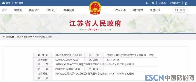 省政府辦公廳關(guān)于印發(fā)智慧江蘇建設(shè)三年行動(dòng)計(jì)劃(2018-2020年)的通知