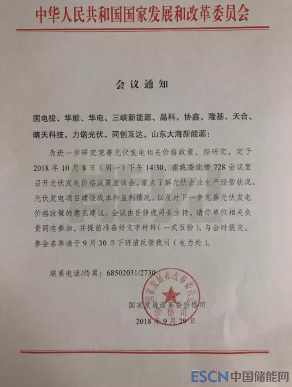 中國儲能網(wǎng)訊:國家發(fā)改委價(jià)格司9月29日發(fā)通知稱,將于10月8日下午組織光伏企業(yè)召開光伏發(fā)電價(jià)格政策座談會,重點(diǎn)了解光伏企業(yè)生產(chǎn)經(jīng)營狀況,光伏發(fā)電項(xiàng)目建設(shè)成本和盈利情況,以及對下一步完善光伏發(fā)電價(jià)格政策的意見建議。
