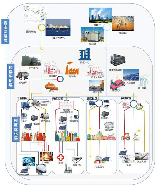 省市、區(qū)縣、園區(qū)綜合能源系統(tǒng)層級(jí)示意圖