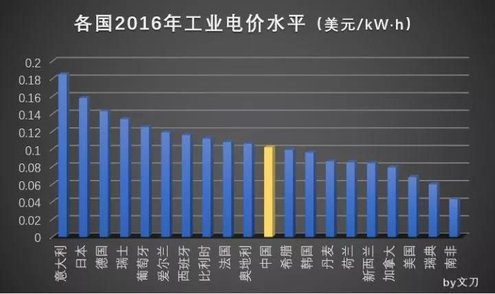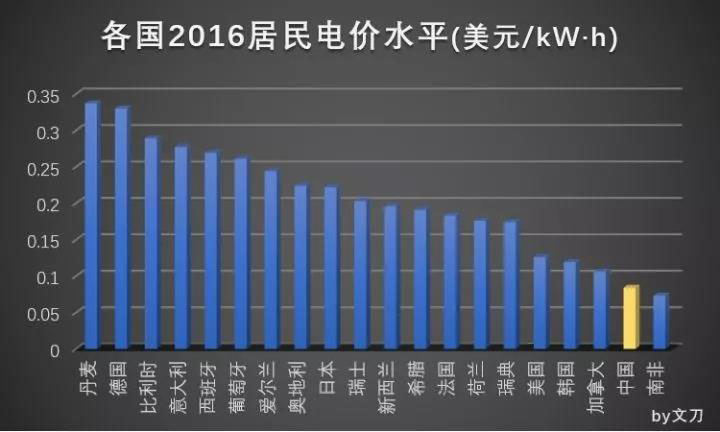 整體來看,我國的電價水平,整體屬于中等略偏下。以2016年的數(shù)據(jù),采用美元為基準進行轉(zhuǎn)換后進行比較。同時,由于各地的電價數(shù)據(jù)形式不同,如豐枯季、分時電價等,所以只取了平均的電價水平。
