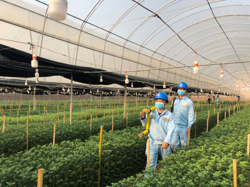 建水供電局南莊供電所來(lái)到刀忠強(qiáng)的小雛菊大棚內(nèi),開(kāi)展用電安全檢查。祁彥君 攝