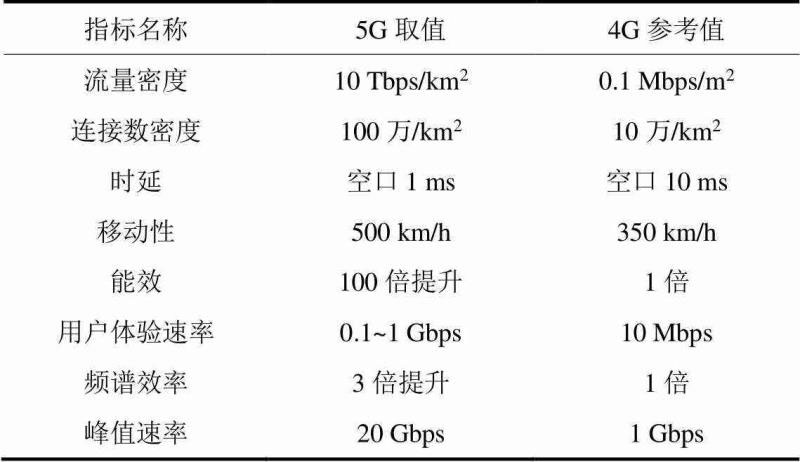 表1 5G與4G指標(biāo)對(duì)比