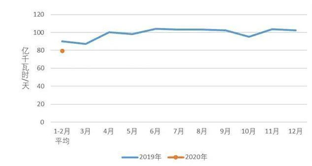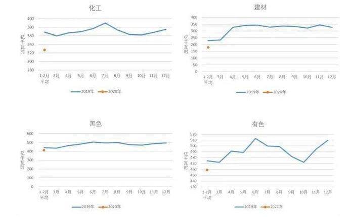 2019、2020年重點行業(yè)分月用電量情況